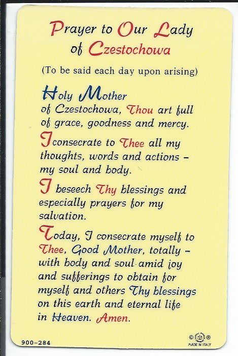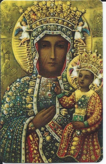 Today’s installment of holy card (with extra photo!) is of Our Lady of Czestochowa, that famous Marian image from Poland.