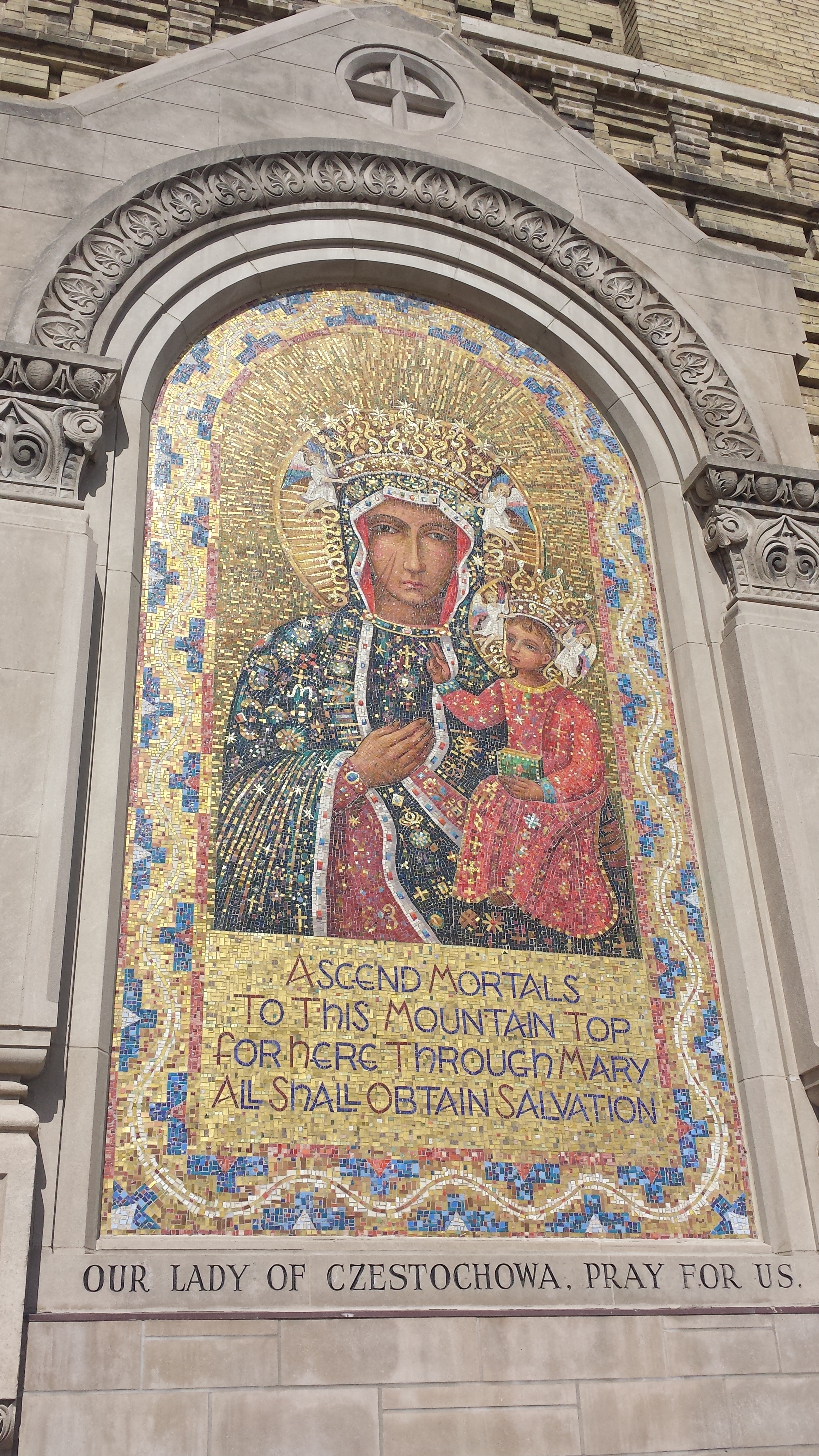 Being in a city with a very strong Polish influence, it is unsurprising that the motherĀ parish of the Polish community has a big ol’ mosaic to her (the Polish seem to love mosaics).
