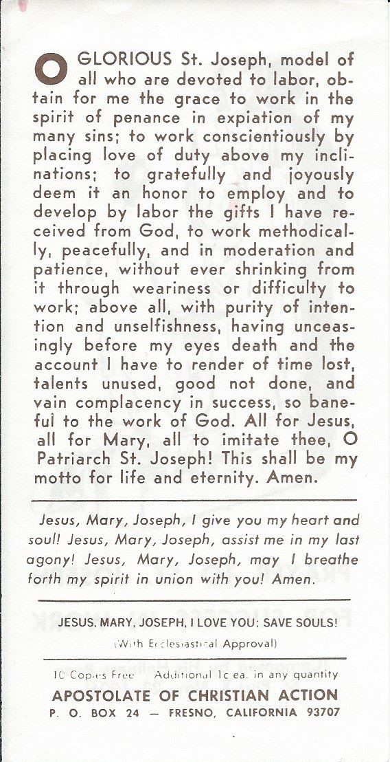 Once again, we Catholics find ways to raise up our humdrum lives and make them into something holy and/or worthwhile. Invoking the saints in daily life is a good practice to do (as we have so many, and they love to help, especially for those things under their patronage), but we would do well to ask St Joseph, the patron saint of workers, to help us succeed in our work(s). Today is the feast day of St. Joseph, as well. Let us fly to him and ask his intercession in our daily work!